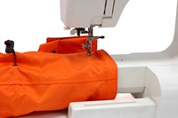 Машина оснащена регулятором давления лапки на ткань, что позволяет работать с тонкими и "проблемными" тканями.