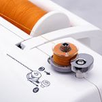 Машина оснащена горизонтальным челночным устройством с прозрачной шпулей и прозрачной крышкой, через которую очень удобно контролировать остаток нити на шпуле. Кроме того такое челночное устройство не требует смазки и в него очень удобно заправлять шпулю.