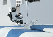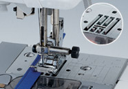 Шесть гребенок нижнего транспортера позволяют равномерно продвигать ткань даже при шитье по самому краю ткани и позволяют получить аккуратную строчку на любых тканях — от тонкого шелка, до толстой джинсы.