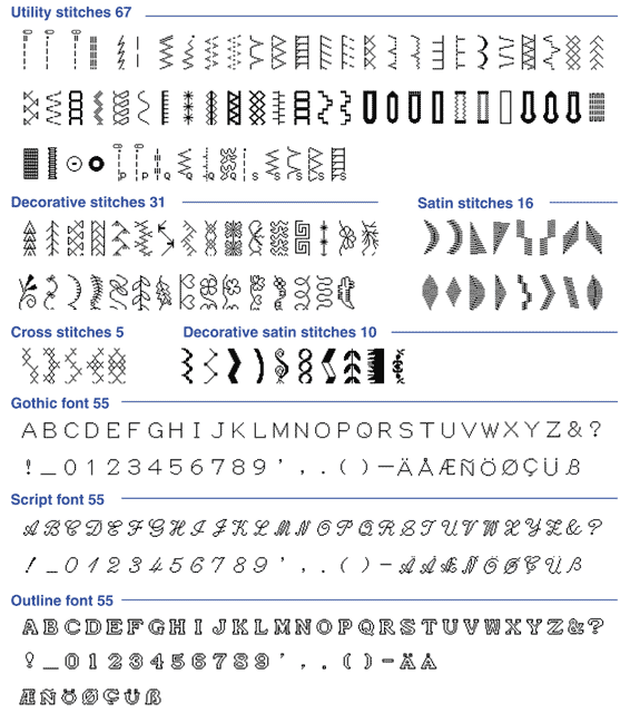 Образцы строчек выполняемых швейной машиной Brother QS-480QE: