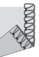 Используется для всех сильнорастяжимых швов, которые требуется укрепить, такие как горловина, боковые швы, рукава и т. д. Также этот шов используется для сборок, вшивания канта и резинки с дополнителными лапками.