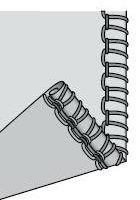 Для обработки края легких изделий. Этот шов придает финишную обработку шелковым шарфам, рюшам и носовым платкам. Для получения красивого ролевого шва рекомендуем петлители заправить декоративными нитками, а иглу — обычной нитью.