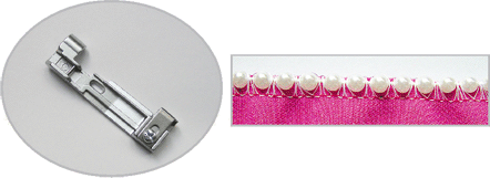 Лапка применяется для пришивания резиновой ленты. При этом можно регулировать степень стягивания ленты.