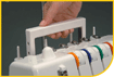 Точные цветные регуляторы натяжения. Используются для настройки натяжения при работе с нестандартными материалами. Цветовая индикация всех нитей исключает неправильную заправку.