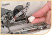 Автоматический заправщик петлителей. Удобное приспособление позволяет заправить нижний и цепной петлитель нитью одним касанием.