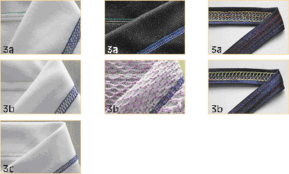 1. Оверлочные строчки. 12 оверлочных строчек выполнятся в зависимости от комбинации 2, 3 или 4 нитей:
