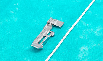Эта лапка служит для вшивания тесьмы в шов, чтобы предотвратить швы от растяжения. Это особенно актуально для плечевых швов. С этой лапкой Вы можете одновременно вшивать тесьму и обрабатывать край изделия.
