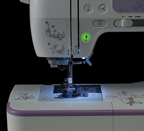 - плавная регулировка скорости шитья
