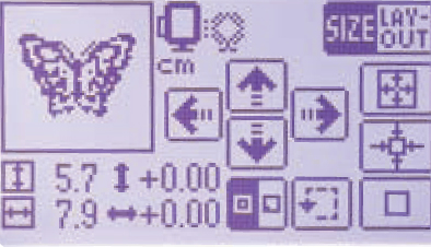 Управление машиной осуществляется касанием функций русскоязычного меню на жидкокристалическом дисплее. Редактирование рисунка на экране включает комбинирование, поворот (1, 10, 90 градусов), зеркальное отображение рисунка и масштабирование.