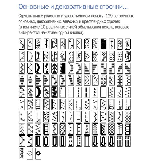 В машине есть ячейки памяти, в которые Вы сможете сохранять свои комбинации рисунков и декоративных строчек.