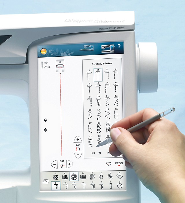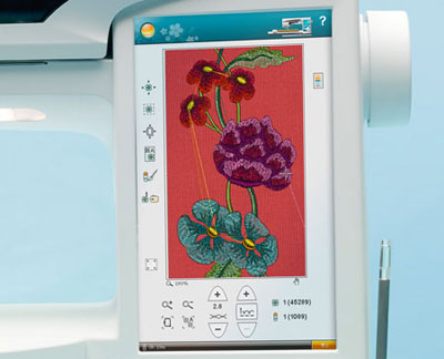 Огромный (более 174 x 104 мм) интерактивный экран с сенсорным управлением Ultimate Interactive Screen имеет высокое разрешение и полноцветную палитру VGA. Строчки и вышивки на нем отображаются с удивительной точностью в трехмерном (3D) режиме. Плюс к этому, с экраном очень просто работать. Используя стилус или мышь, выберите любую функцию, стежок, вызовите нужную информацию — все так просто!