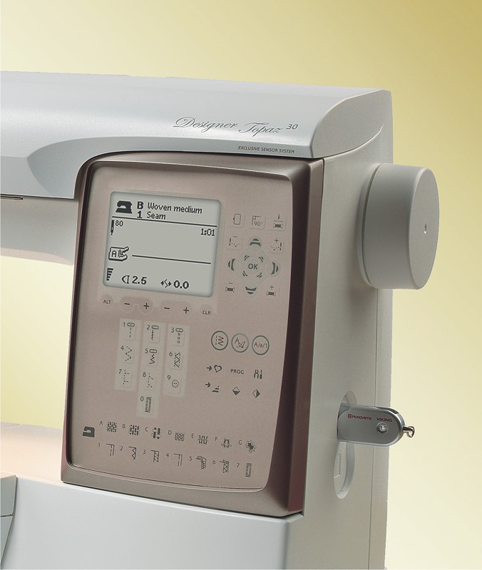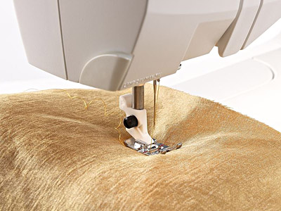 Система сама определяет толщину ткани, регулируя положение лапки. При нажатии педали или кнопки на передней панели машины DESIGNER TOPAZ™ датчик автоматически устанавливает давление лапки в зависимости от толщины ткани.